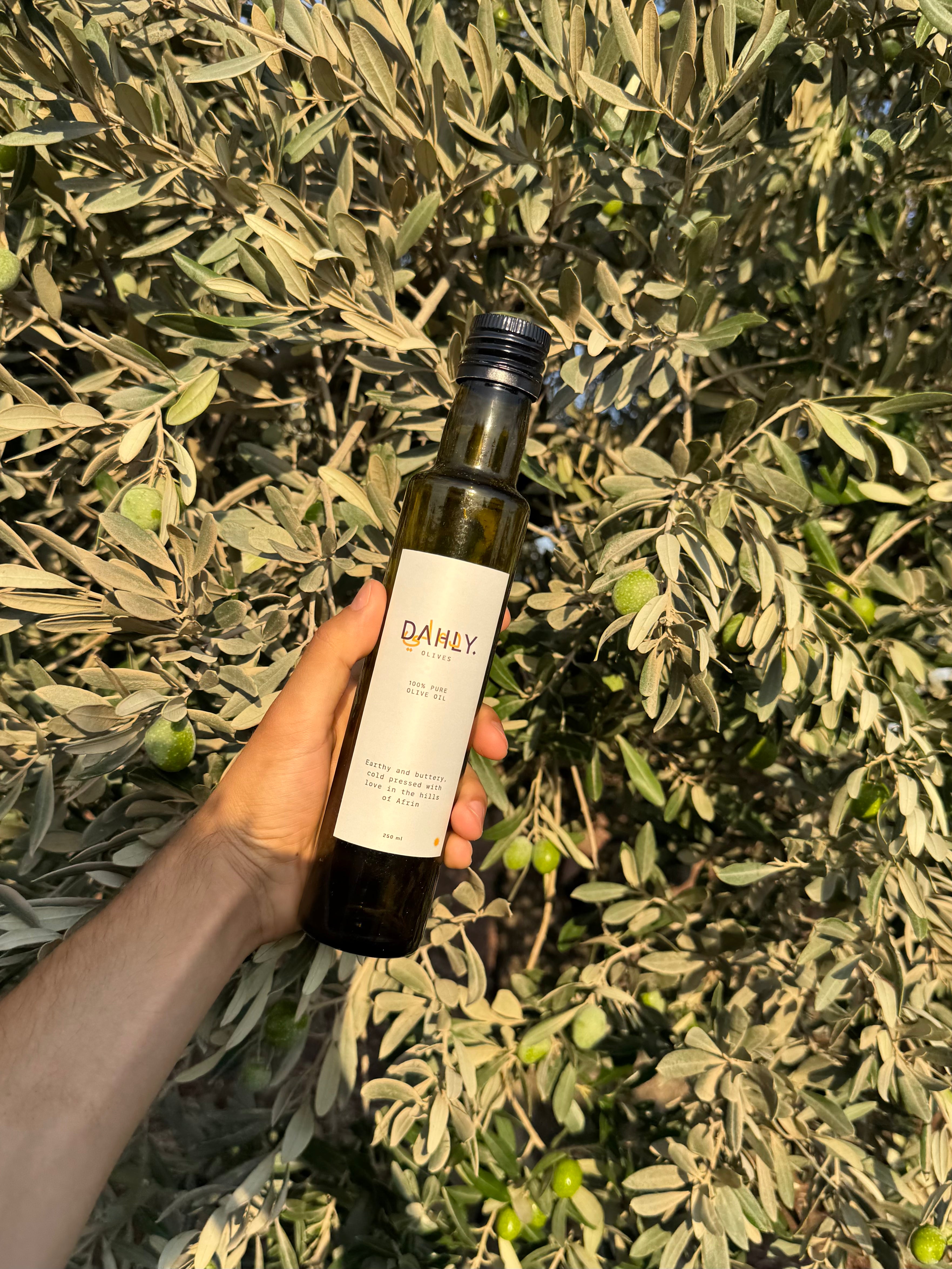 Ontdek de essentie van echte olijfolie met Dahly – 100% pure olijfolie. Alleen het rijke, aardse karakter van olijven uit Afrin, Rojava.