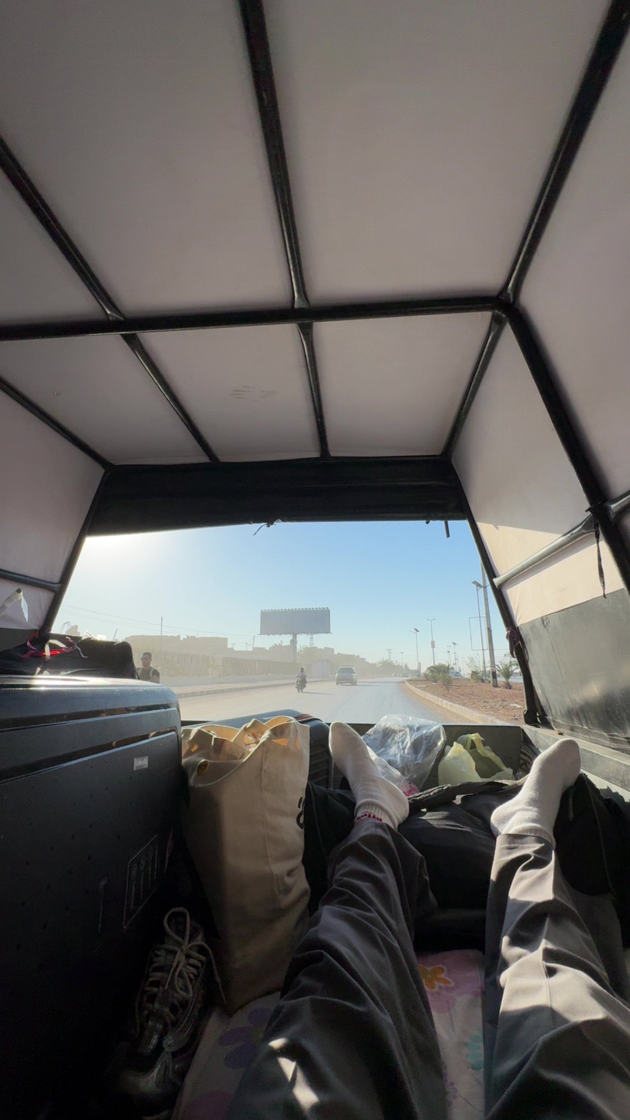 We propten ons in een enorme Hyundai pick-up, onze koffers hoog opgestapeld. Ik koos ervoor om achterin te zitten, tussen de bagage, omdat ik alles in me op wilde nemen: de geur van de rit van Aleppo naar Afrin ruiken, het met eigen ogen zien. En ik zal eerlijk zijn: Syrië ruikt niet lekker. Uitlaatgassen, verbrand plastic, droge hitte... het is overweldigend.