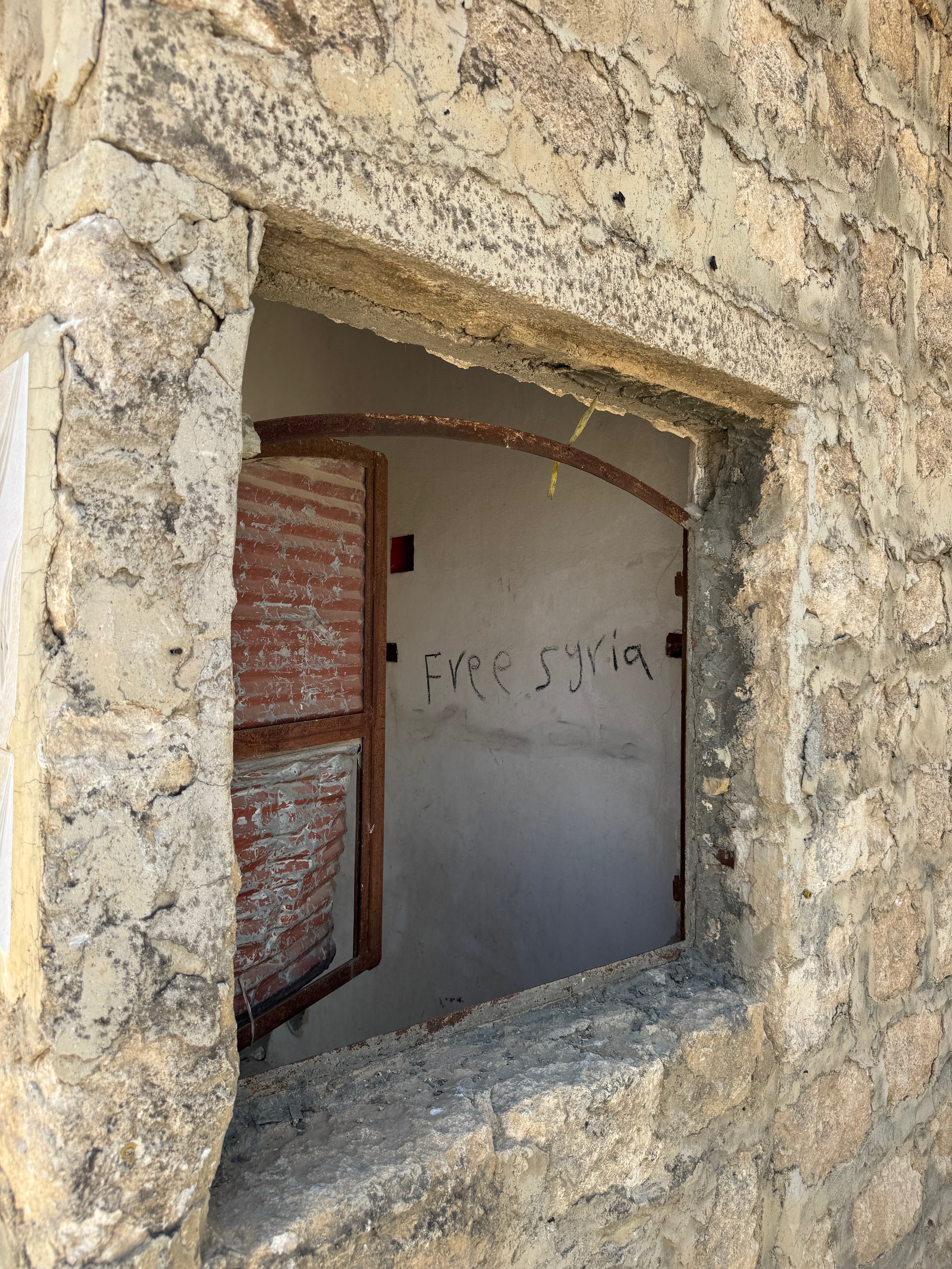 Ik denk dat er niet veel te zeggen valt over deze foto. We merkten echter op dat er weinig teksten, slogans of kunstwerken op de muren te vinden zijn. Misschien waren die er vroeger wel, maar is alles verwijderd. Dit was de enige schreeuw om aandacht die ik in Syrië zag.